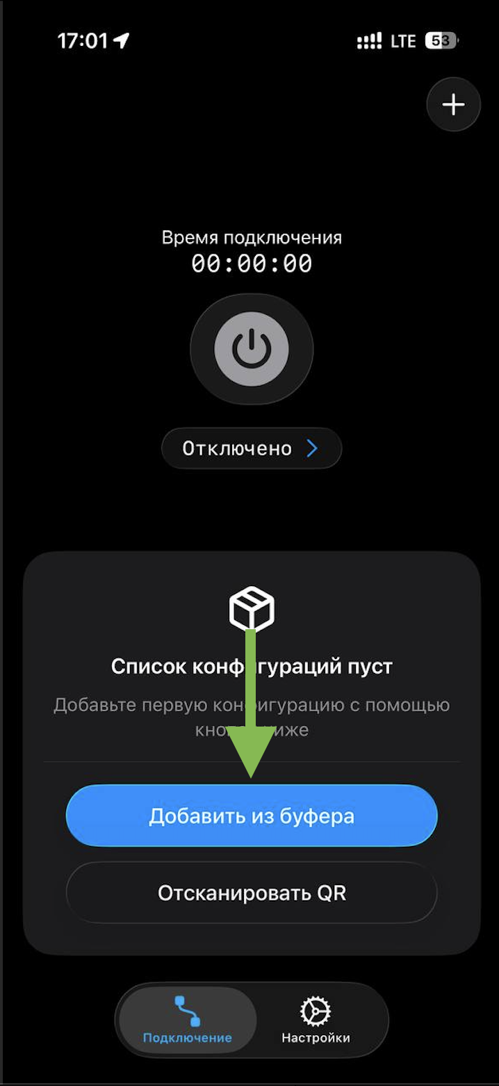 Нажмите на синюю кнопку «Добавить из буфера» в центре экрана