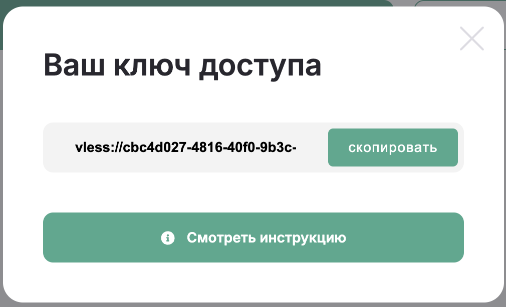 - Нажмите на кнопку «🔑 Получить ключ доступа»